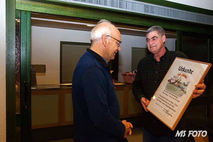 Überreichung der Urkunde zum Ehrenvorsitzenden der IG-Lahn  an  Winfried Klein  durch Frank Spengler.