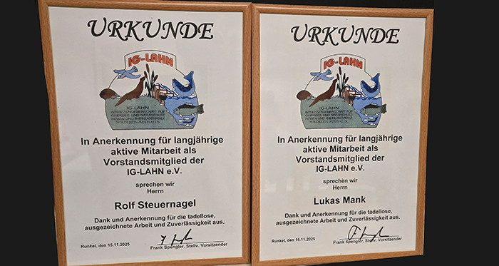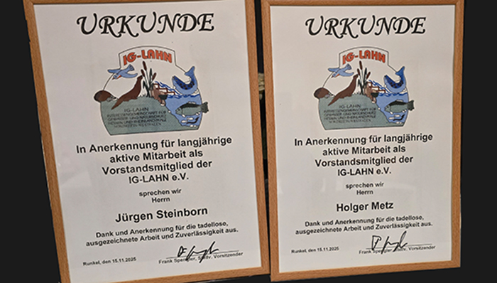 Aumenau. In der Eichelberghalle fand am 15. November 2025 die Jahreshauptversammlung der Interessengemeinschaft Lahn (IG Lahn) statt. Vorsitzender Winfried Klein und sein Stellvertreter Frank Spengler eröffneten die Sitzung, die in diesem Jahr ganz im Zeichen des 40-jährigen Jubiläums der IG Lahn stand. Die Gründung erfolgte am 9. Dezember 1985 in Aumenau, damals noch im Schützenhaus – initiiert von vier bis fünf engagierten Mitgliedern.